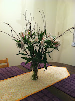 I had dinner for my dad and grandma. I bought these blooming branches and alstromeria from Kroger.