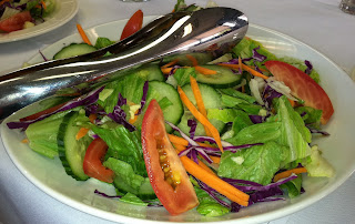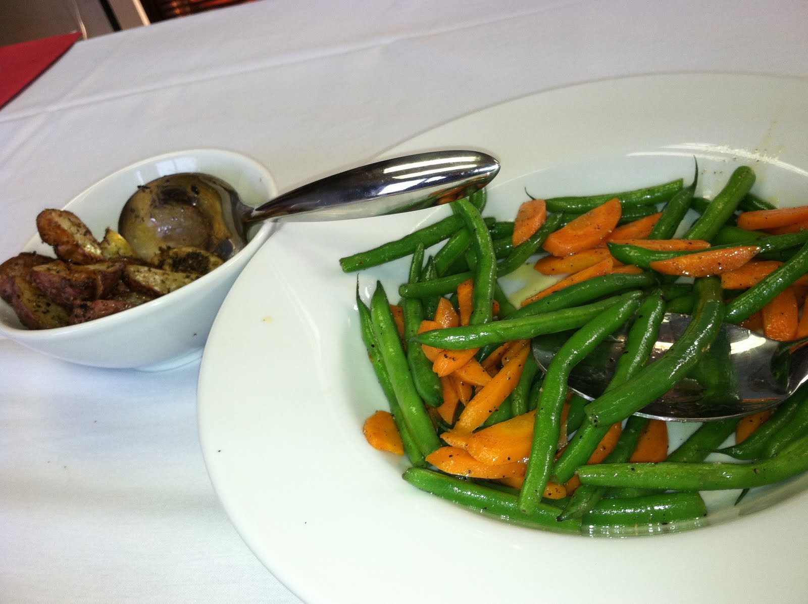 Julie, from Elegant Fare, had emailed a menu to us earlier in the week. We had five entrees to choose from. Let me say that again--five entrees to choose from. Amazing! We started with a salad (and there will be bread at the wedding) and moved on to lemon herb chicken and chicken with terragon sauce. Next was roast beef with gravy. After that came two pork choices--pork loin with barbaque sauce and pork loin with port mustard sauce. Everything was so delicious, including the green bean and carrot sautee. (If you know me, you know what it takes for me to say that.) Now, the dish that may rival the cake for tastiest morsel of the evening goes to the herbed potatoes. Julie wanted to hash out a few wedding details and I let her since I still had a bowl of potatoes to munch on. :)