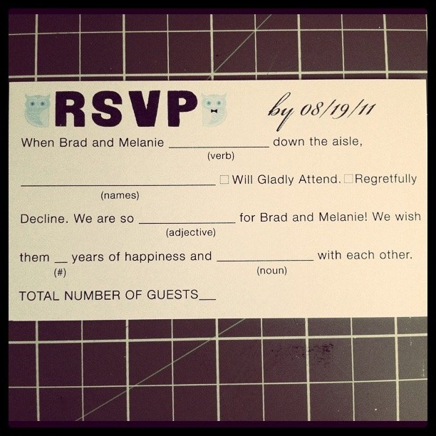 There's a map card in the invite, too, but I didn't think you'd need to see it. Above is the reply card, mad-lib style. These are so fun to receive!