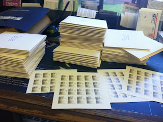 After sewing and stuffing envelopes, Mom posted on her facebook that, "This morning I sewed envelopes for my daughter's wedding invites. Nothing 'traditional' about them! (Turned out great, though.)."