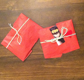 Red tissue paper packages tied up with string...